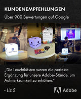 Unsere Leuchtkästen und Displays sind für Firmenveranstaltungen konzipiert. Es ist kein Zusammenbau erforderlich, sodass sie sofort einsatzbereit sind.