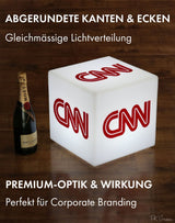 Dieser einzigartige personalisierte Leuchtwürfel kann mit Ihrem Logo oder Design bedruckt werden, in voller Farbe.