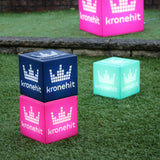 Die kleineren Leuchtkästen können als Tischdekoration mit Markenaufdruck verwendet werden - beliebt für die Dekoration von Firmenveranstaltungen. Die grösseren Lichtwürfel sind stabil genug, um darauf zu sitzen - Sie können sie als Sitzmöbel, Hocker und Tische verwenden.