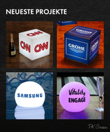 Hochwertige wiederaufladbare LED Lampe von PK Green. Leuchtender Würfel. Ideale Beleuchtung für Lounge, eine Party, Veranstaltung.